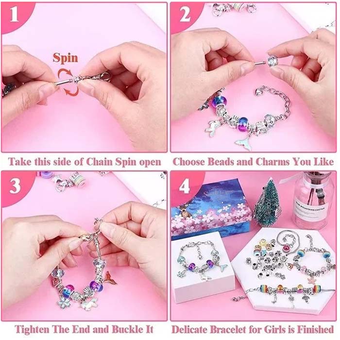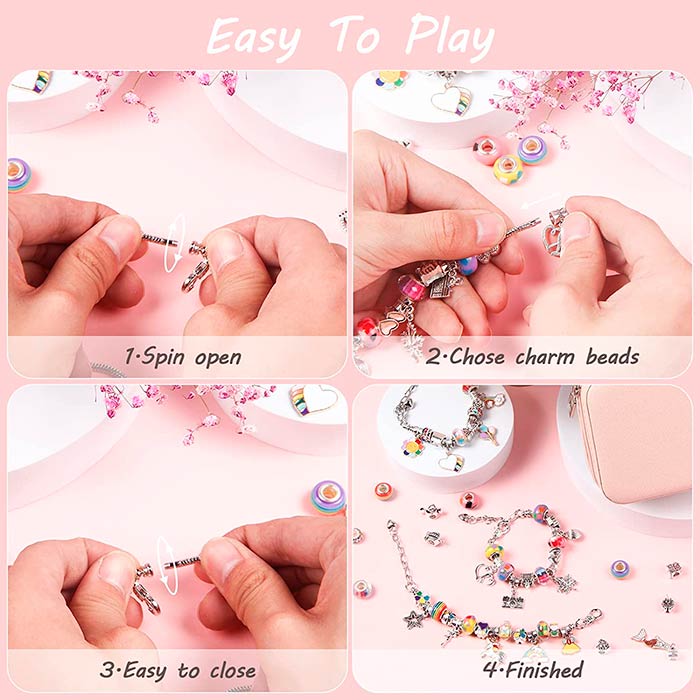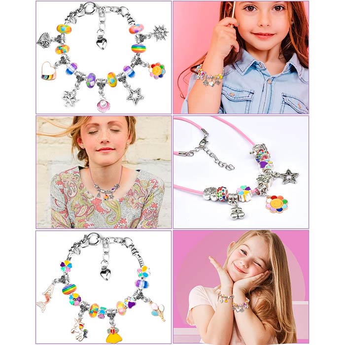 Oblikujte zapestnice po vaših željah in okusu. V setu prejmete kar 60 raznobarvnih perlic in obeskov, ki jih poljubno natikate na priložene zapestnice!