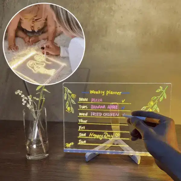 Lumily LED tabla spremeni vsak zapis v svetlečo umetnino. Napiši sporočilo, nariši risbo ali pusti prijazno noto. Idealna za mizo, otroško sobo ali darilo.