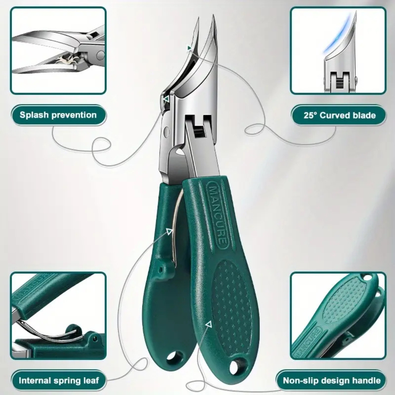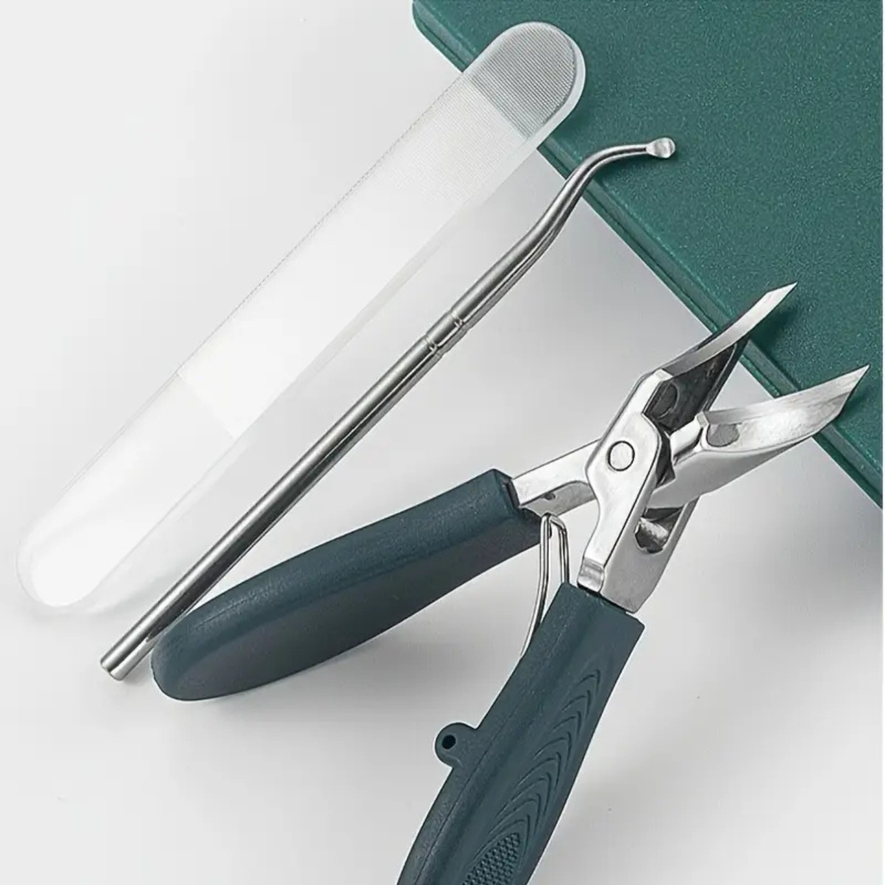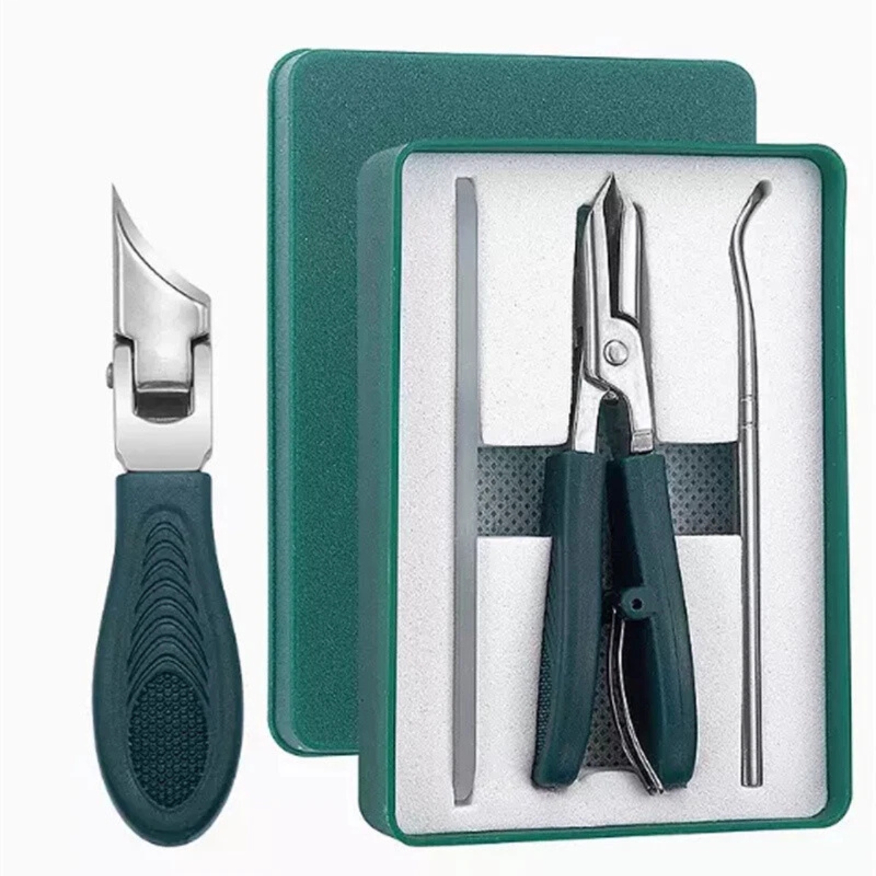 Profesionalni komplet za urejanje zahtevnih, vraščenih in zadebeljenih nohtov – hitra, natančna in varna rešitev za popolno nego doma. Vključuje klešče z edinstveno zasnovo orlovega kljuna, pilico in potiskač obnohtne kožice. Sledi naravni krivulji nohta za hitre, natančne in varne reze
