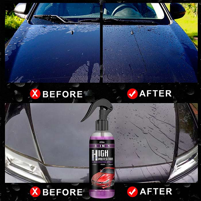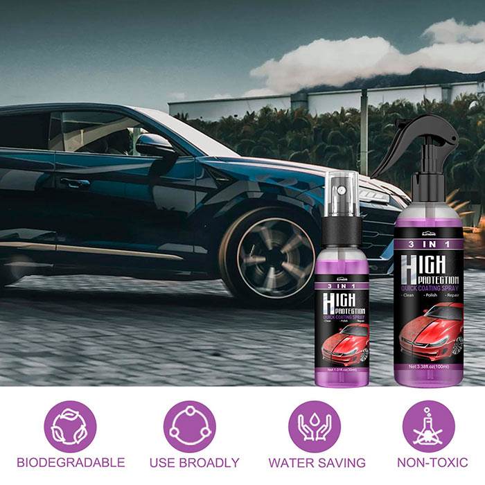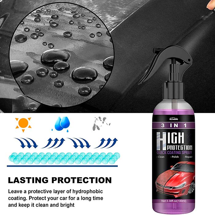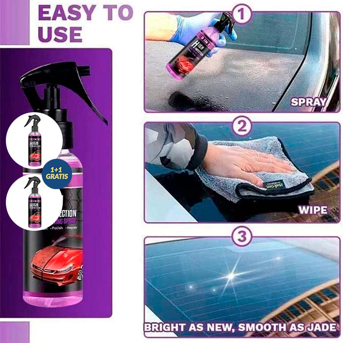 Čiščenje | zaščita barve | popravilo in premazovanje. Sprej enakomerno razpršite na vaš avtomobil z razdalje 20 cm. Obrišite z mehko krpo. S sprejem lahko odstranite madeže ter hkrati poskrbite za zaščito in poliranje avtomobila. Rok uporabnosti: 3 leta.