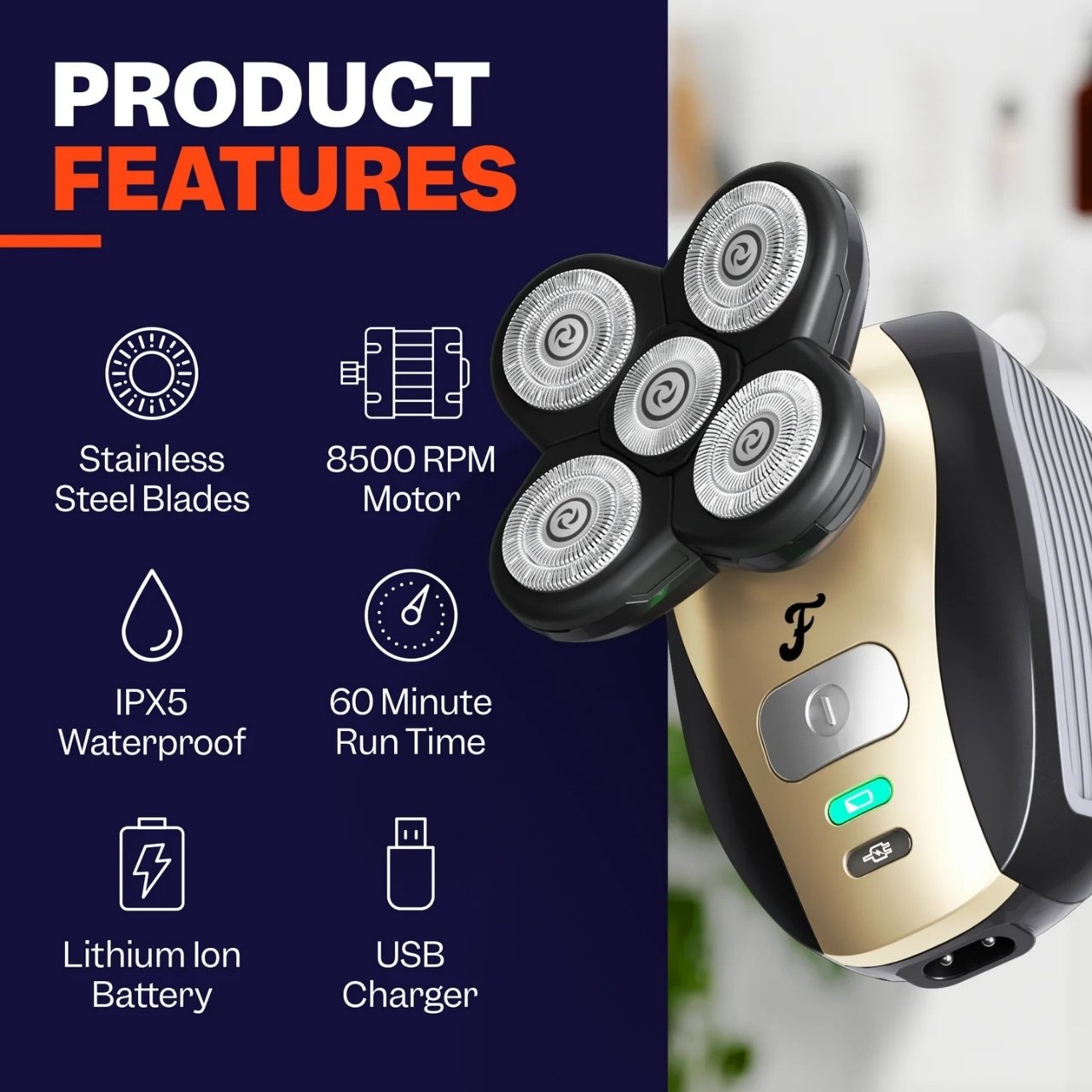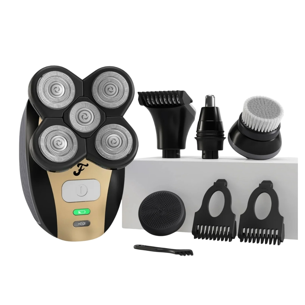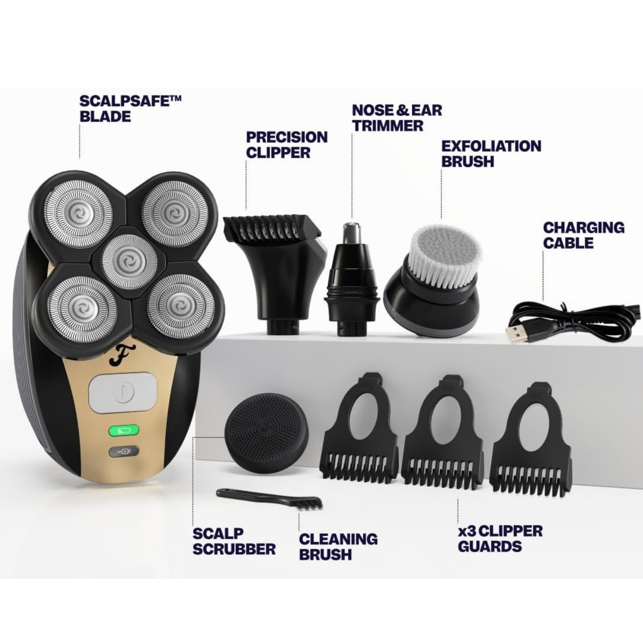 | V Paketu: | 1x brezžični brivnik, 1x USB polnilni kabel, 1x krtačka za čiščenje, 1x rotacijsko rezilo, 3x nastavek za krajšanje dlak/las (3mm, 5mm, 7mm), 1x nastavek za dlake v nosu/ušesih, 1x ščetka za piling, 1x masažni nastavek za lasišče |