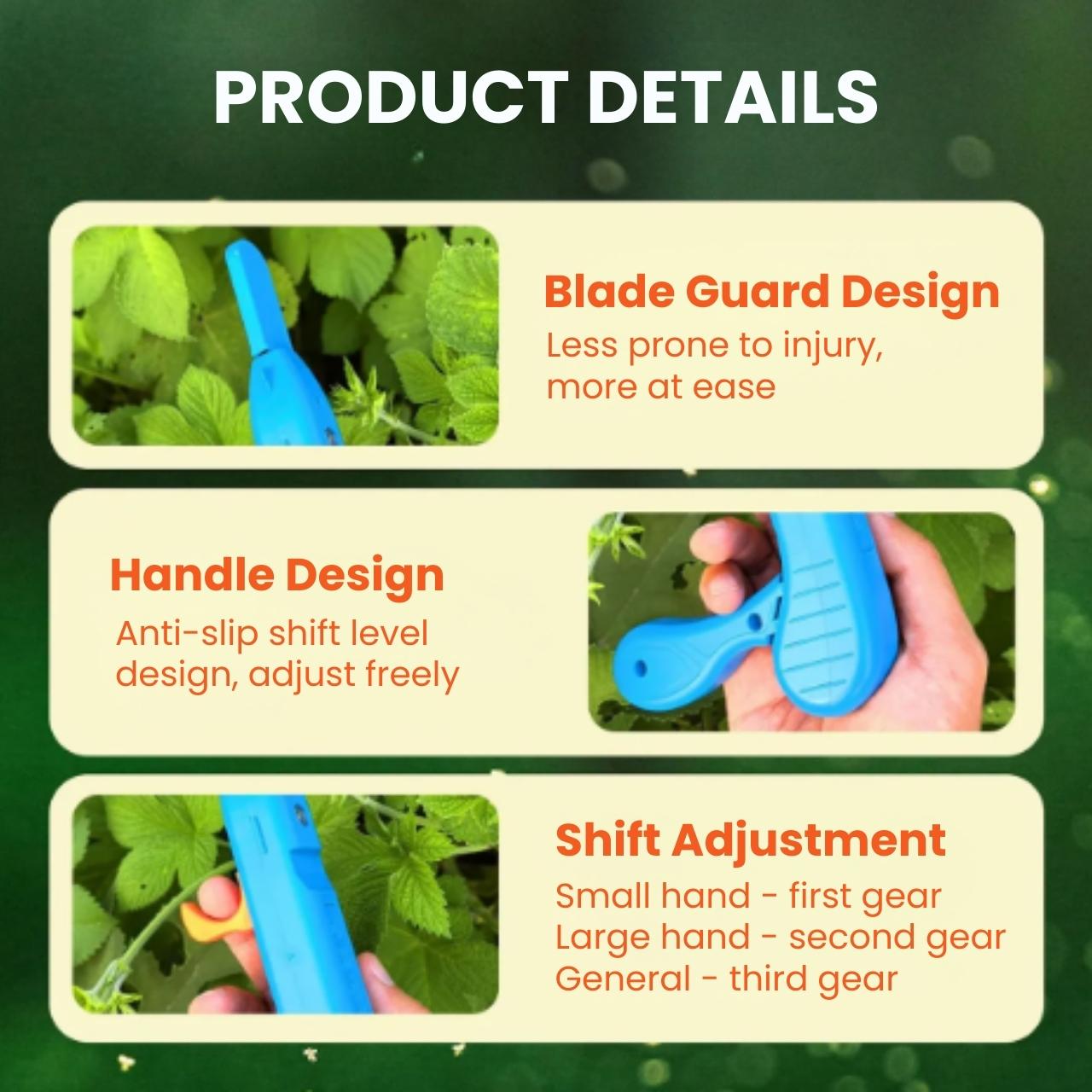Ostro in posebno oblikovano rezilo omogoča čiste in nadzorovane reze brez, da bi poškodovali rastline. Rezilo je v obliki kavlja kar omogoča, da izberete točno določeno vejico ali rastlino in jo odrežete. Pri obrezovanju sadja, zelišč ali cvetja boste tako dosegli lepši rezultat.