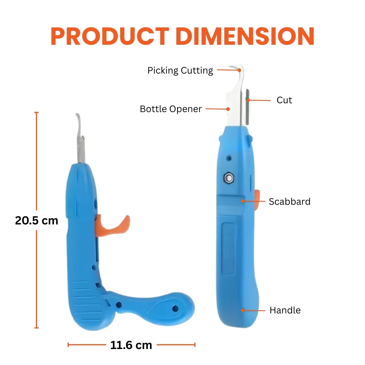 Škarje imajo posebno kavljasto rezilo, ki omogoča natančne reze. Na eni strani kavlja je vgrajen odpirač za steklenice, na drugi strani pa ravno rezilo za standardno rezanje, ki ga lahko uporabite tudi pri ceplenju rastlin. Tako dobite praktično 3v1 orodje. Zaradi obojestranske zasnove so primerne za levičarje in desničarje.