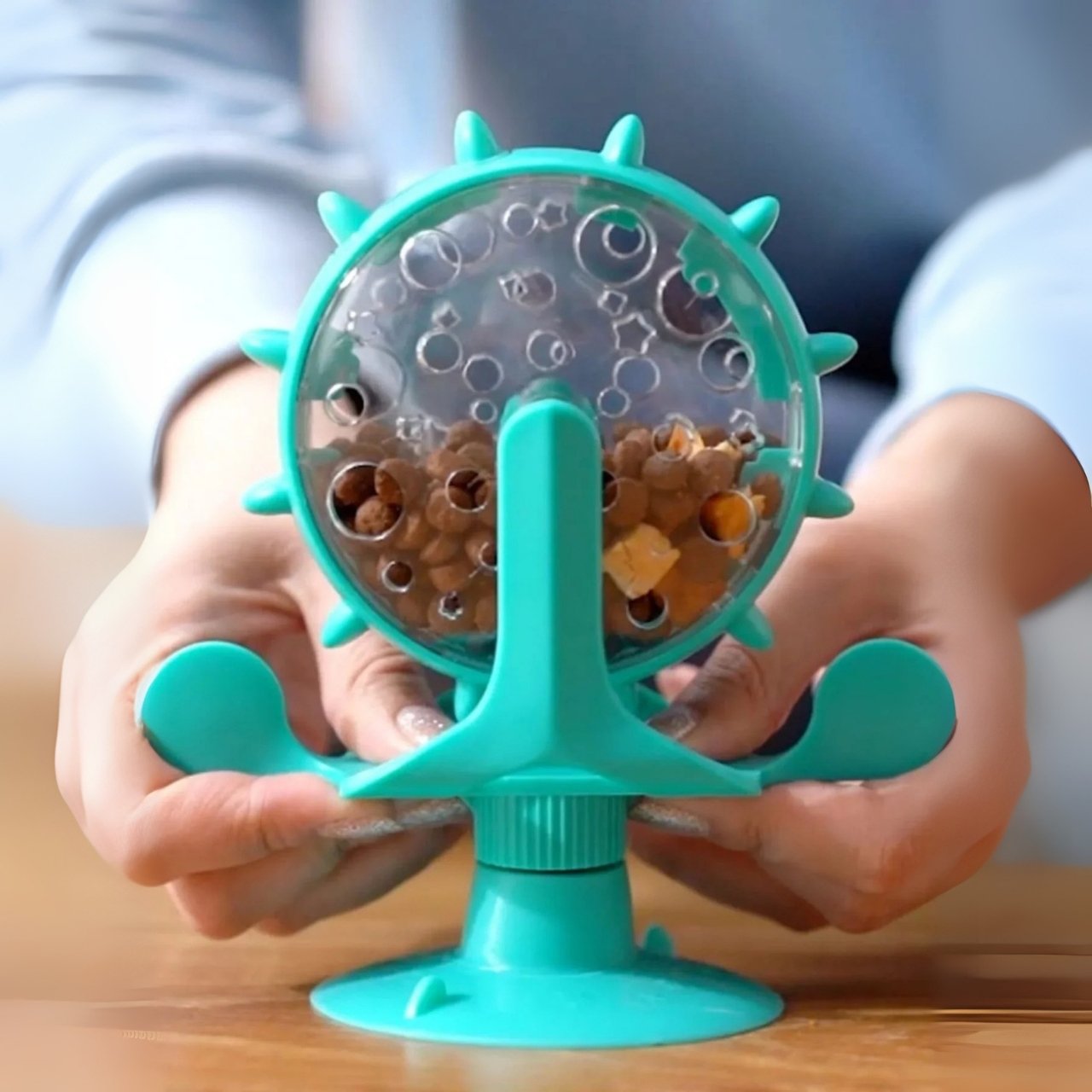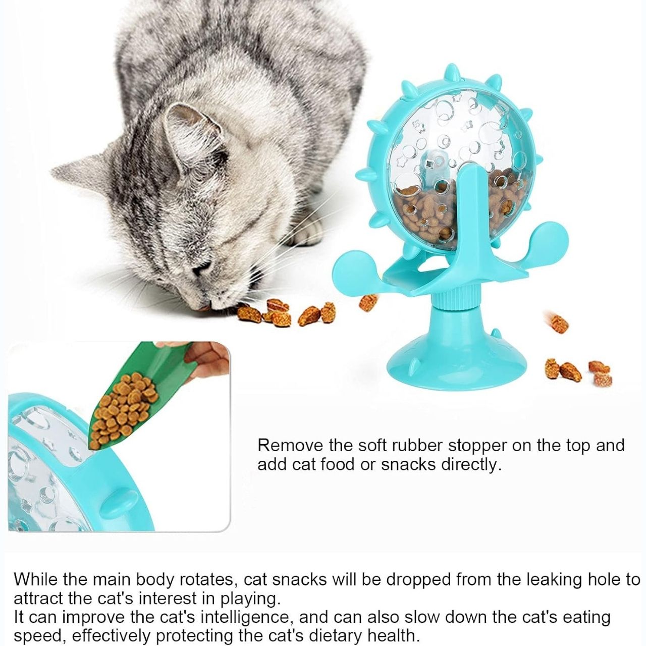 Zabava, gibanje in hranjenje – vse v enem! Interaktivna igrača z vrtečim kolesom, ki vašega ljubljenčka animira, hkrati pa mu na igriv način postreže s priboljški. Odlična rešitev za aktivno igro in zmanjševanje stresa.